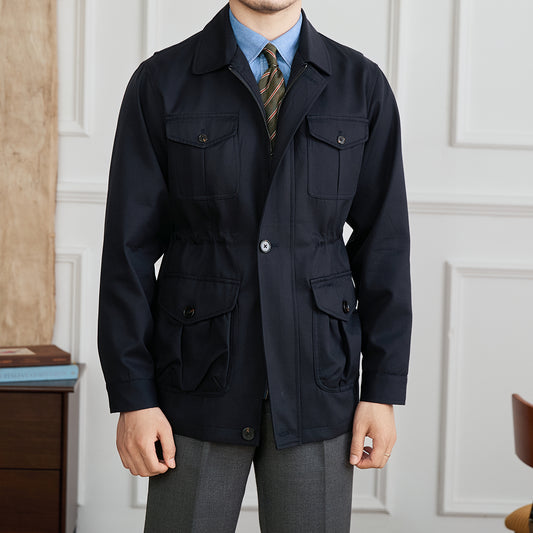 Fashion Waist-controlled Elastic Safari Jacket Coat Thin Polo Collar Jacket Men